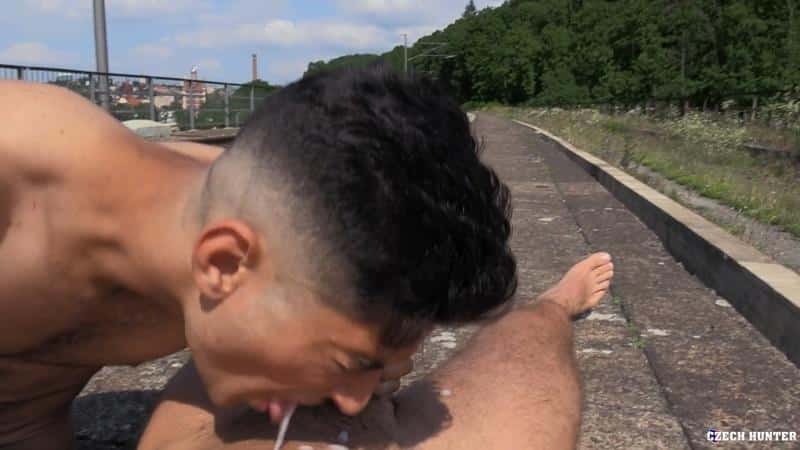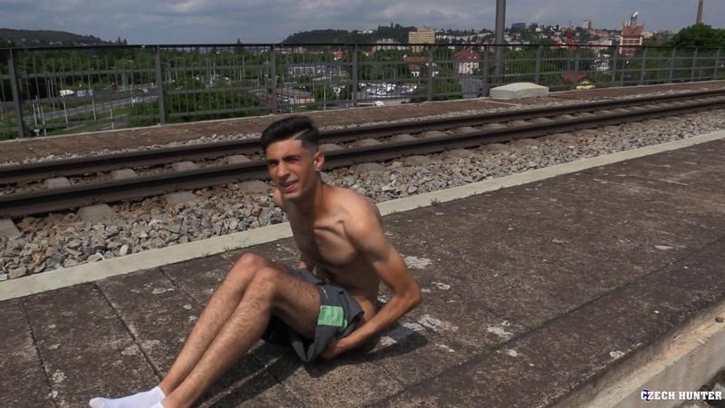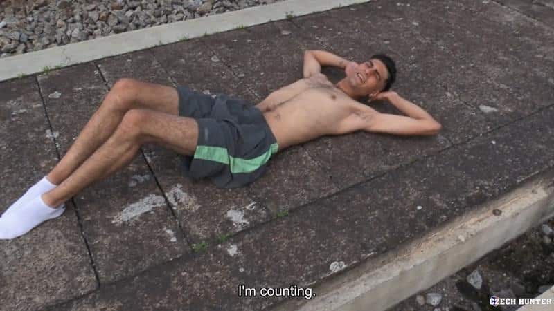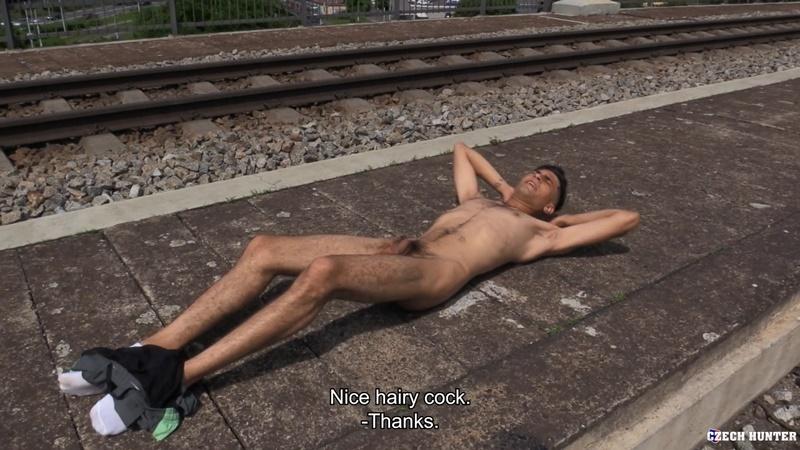 I was mesmerized by his ripped six-pack abs and his hairy uncut cock when he stripped naked and showed me a few situps on the side of the rail track.